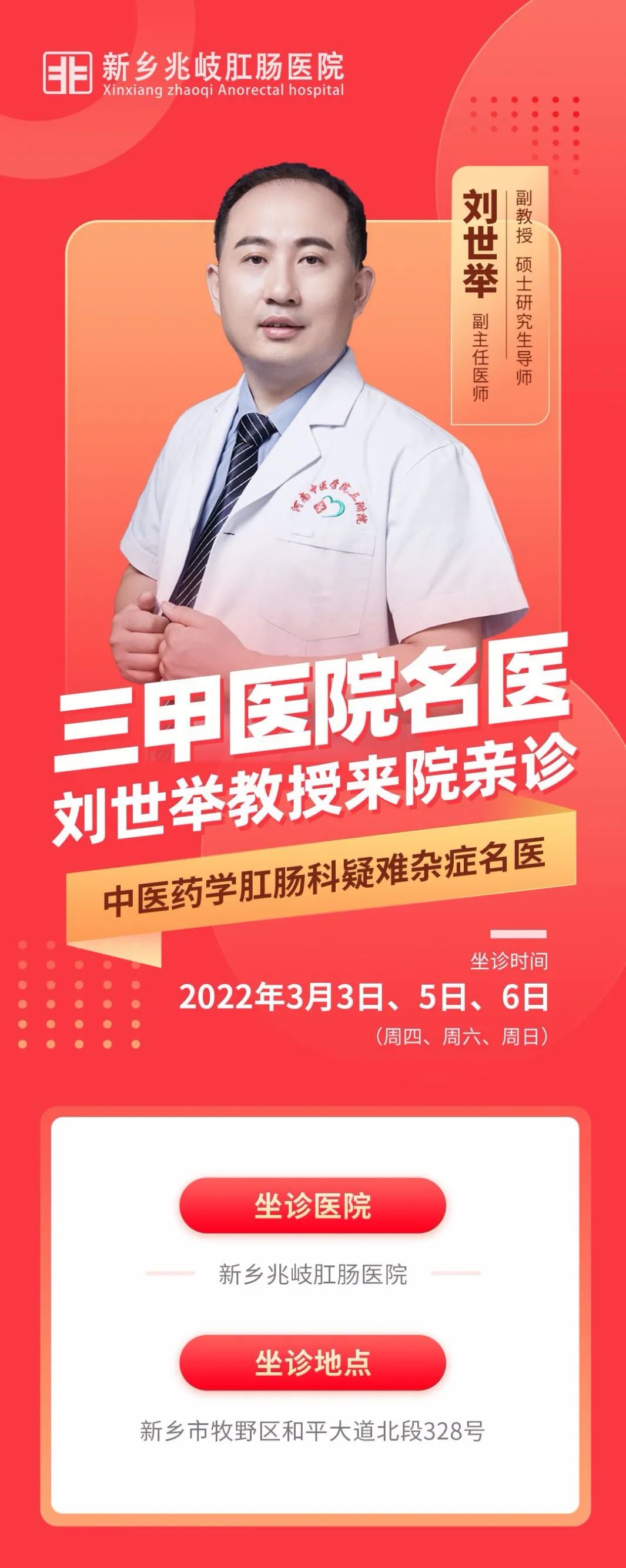 【3月3日、5日、6日】三甲医院名医刘世举教授来院亲诊!