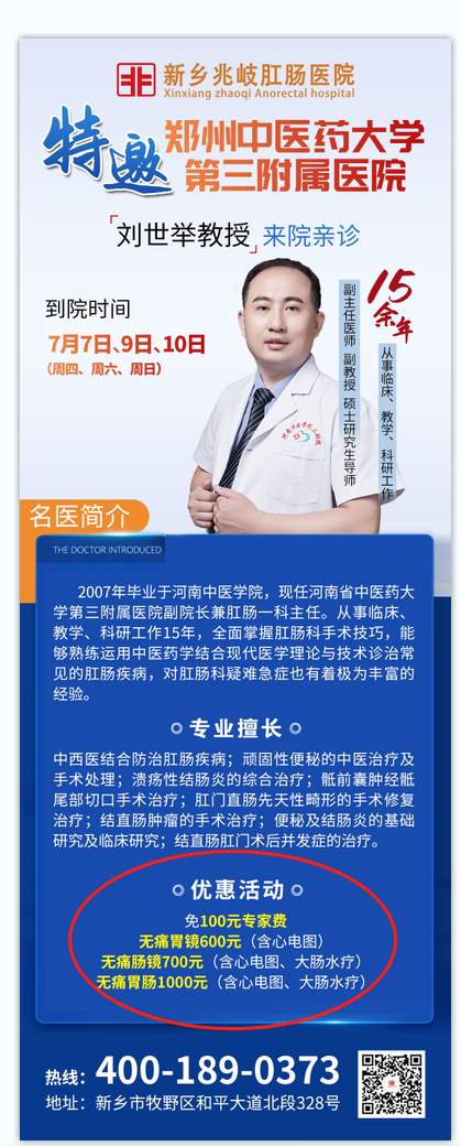 【7月7日、9日、10日】三甲医院名医刘世举教授来院亲诊!